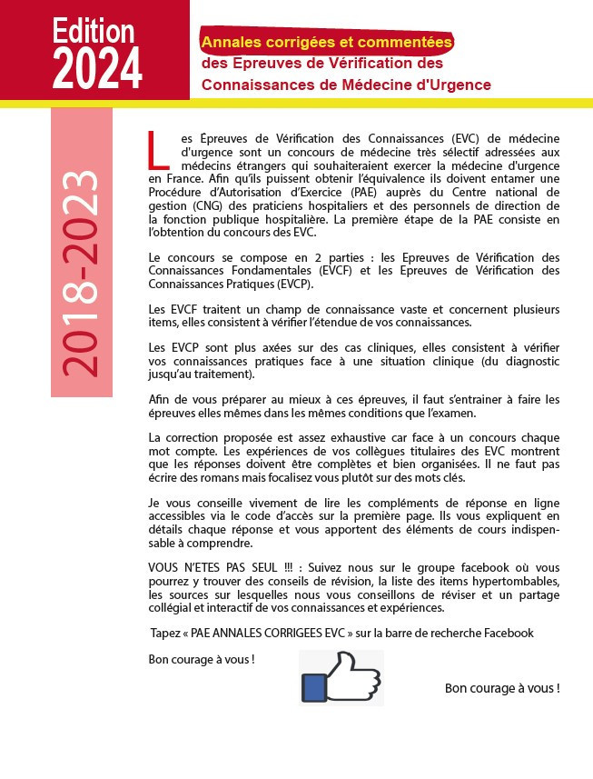 Les EVC (épreuve de vérification des connaissances) de médecine d'urgence sont un concours de médecine très sélectif adressé aux médecins urgentistes étrangers qui souhaitant exercer en France.