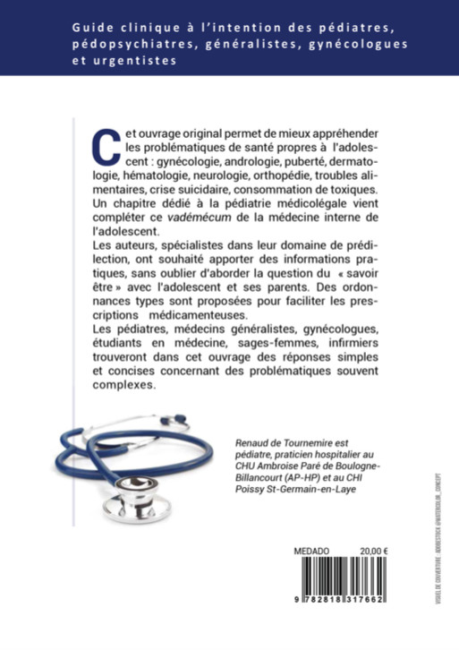 Les auteurs, spécialistes dans leur domaine de prédilection, ont souhaité apporter des informations pratiques sans oublier d'aborder la question du "savoir être" avec l'adolescent et ses parents. Des ordonnances types sont proposées pour faciliter les prescriptions médicamenteuses.